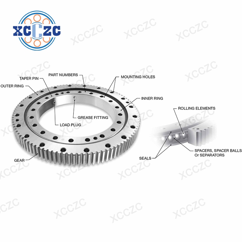 Our Heavy-Duty Slewing Bearings are precision-engineered components designed to handle massive axial, radial, y tilting moment loads simultaneously, ensuring smooth y reliable rotation. Manufactured from high-strength forged 42CrMo/50Mn alloy steel and treated with advanced carbonitriding or induction hardening, these bearings deliver exceptional resistencia al desgaste, durability, y load-bearing capacity.